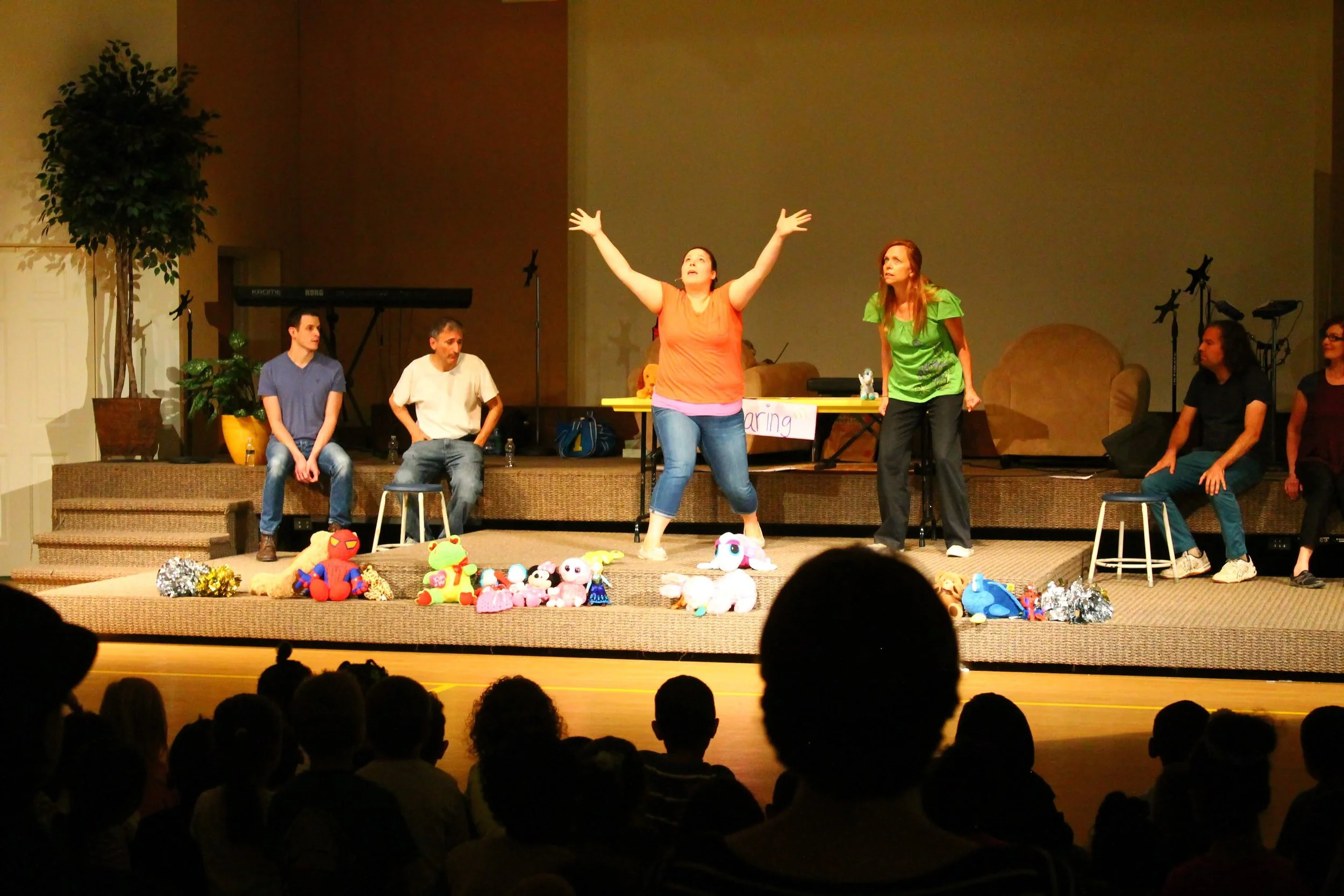 Story Toys. Our improv form for kids used toys and stuffed animals they brought to the show to inspire our actors to make characters out of them. Then we did a three-act long form with these toy-inspired characters. Later, we included “themes” to create an overall focus, like helping out, listening or sharing.