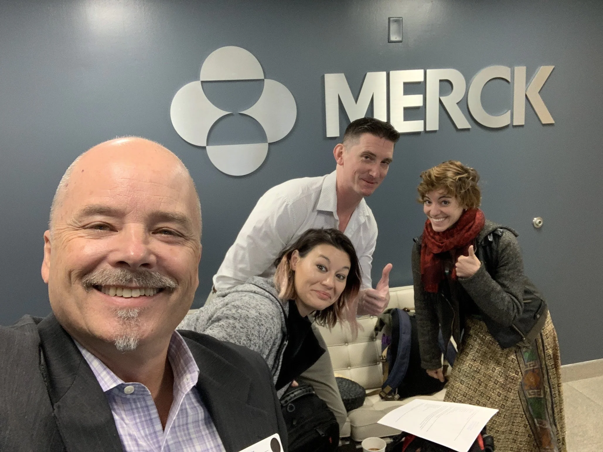 Kaitlin, Bob, Leah and I get ready to offer a workshop to a very important client.