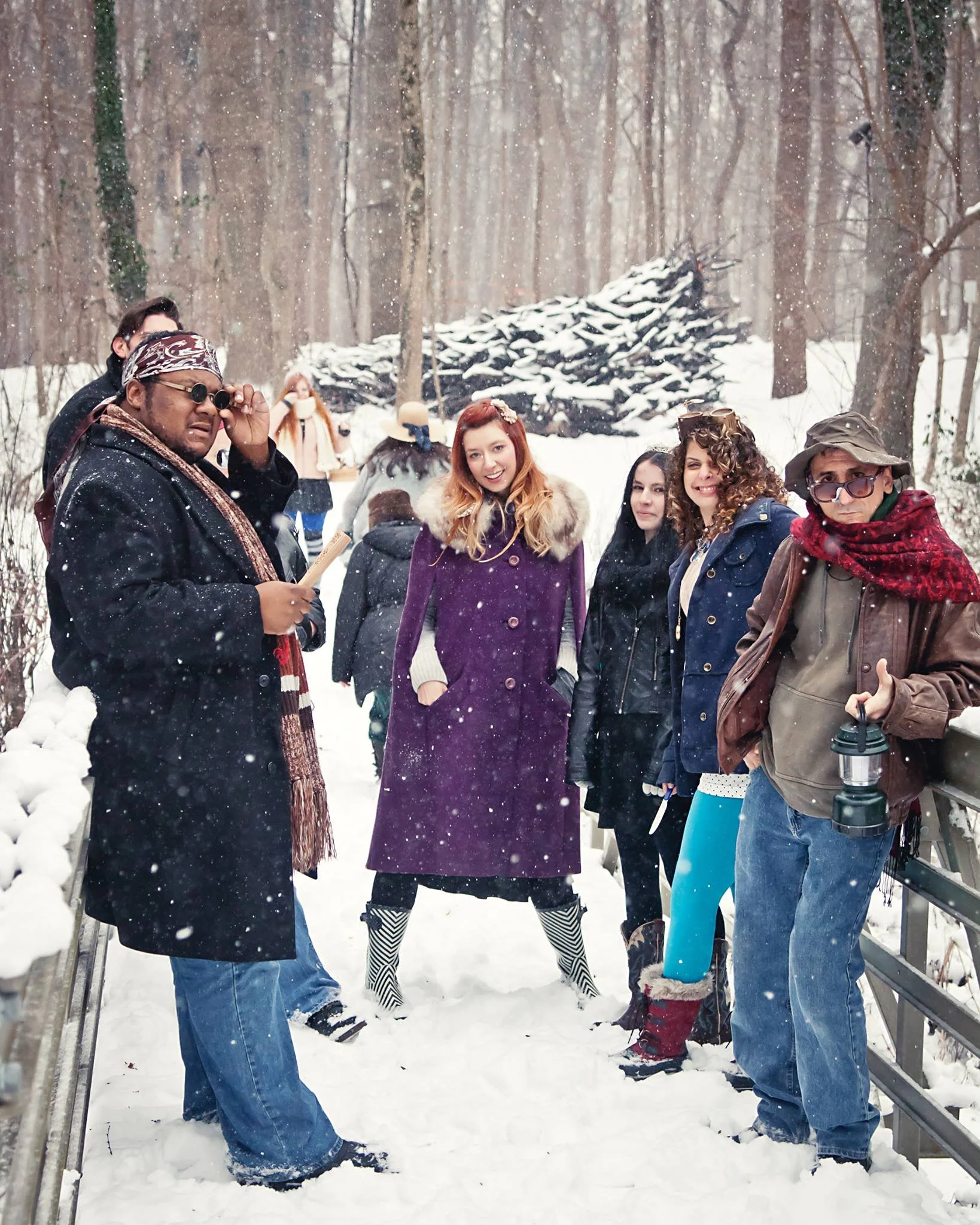 Jen in the middle with some of the original ensemble: Langston Darby, Bob Stineman (hidden), Emily Gibson, Katherine Perry and Francesca Piccione walking away, Jennifer MacMillan, Randi Hickey, Sarah Knittel, Jerry Perna.