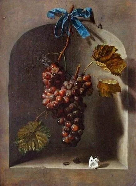 Barend van der Meer (1659-c.1702), Bunch of grapes hanging in front of a niche.